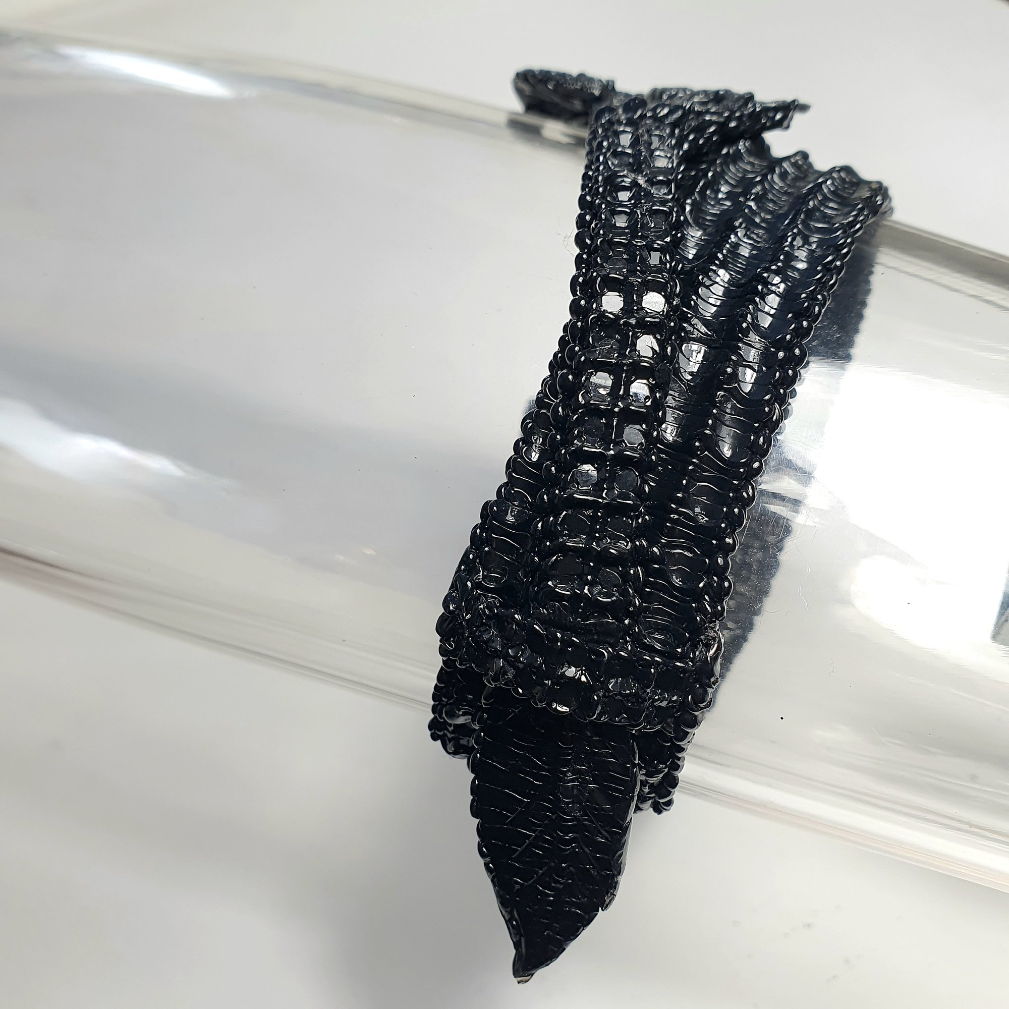 Black bracelet with beautiful shimmering surfaces and shimmers.