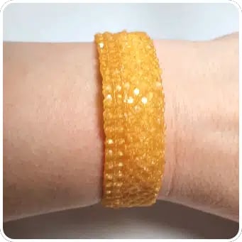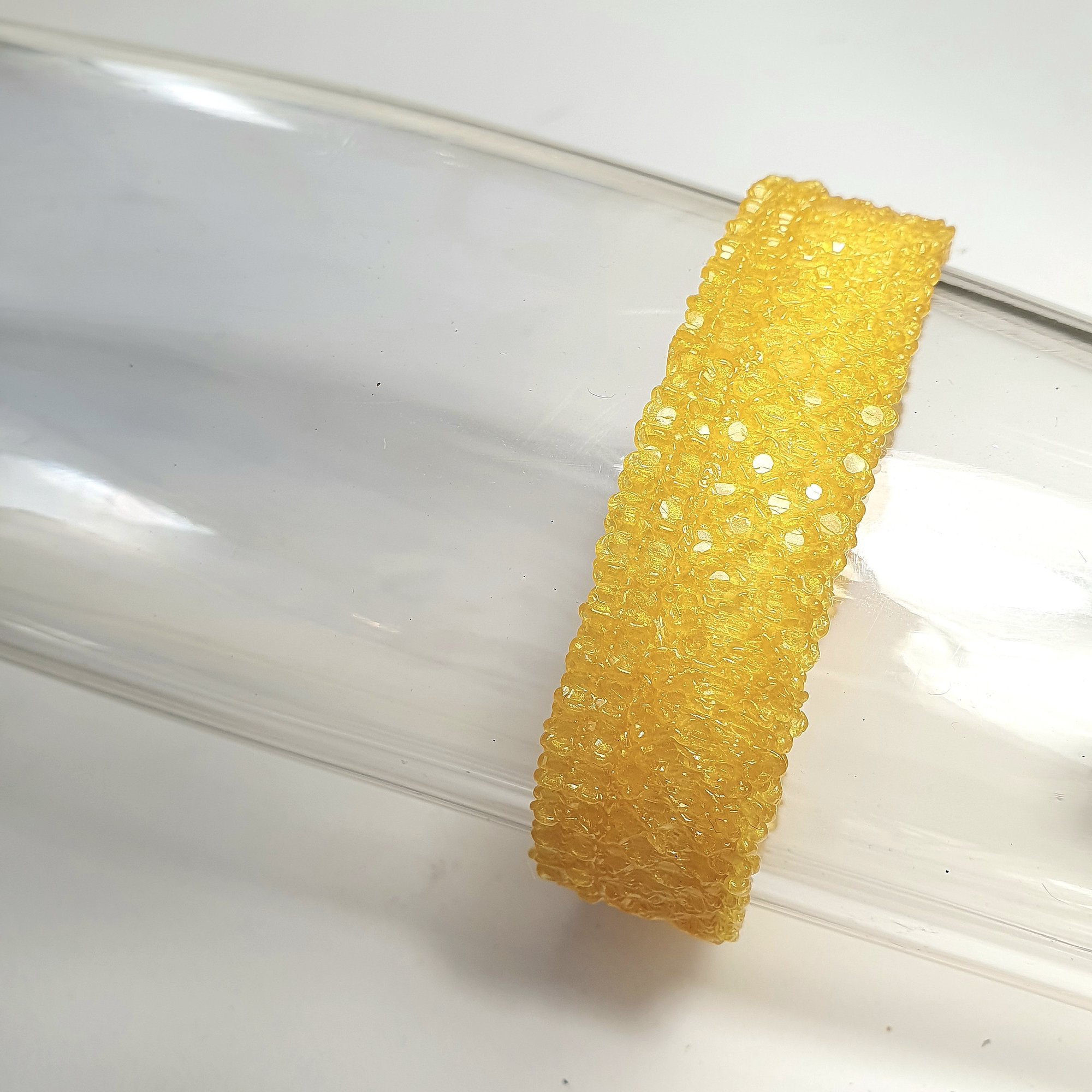 Yellow/gold colored bracelet with beautiful shimmering surfaces and shimmers.